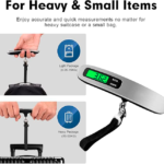 Agarre ergonómico y resistente: Su superficie con revestimiento de goma texturizada proporciona un agarre cómodo y seguro, mientras que el gancho de metal y la correa de nailon sujetan firmemente tu equipaje para un pesaje estable y preciso.
