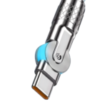 Ambos extremos incorporan conectores USB-C giratorios de 180°, diseñados para adaptarse a cualquier ángulo de uso. Esto reduce la tensión en el cable, evita dobleces forzados y elimina los enredos, haciendo que cargar mientras trabajas, juegas o te desplazas sea mucho más cómodo. También facilita el almacenamiento cuando no lo estás usando.