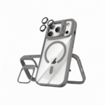 Este case combina transparencia premium, MagSafe integrado y protección total para cámaras, con un marco de aluminio que también funciona como soporte.