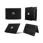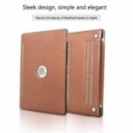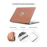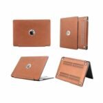 Protector de cuero sintético para MacBook, con un fino acabado y un elegante diseño, rígido, ligero y hecho a medida que deja a la vista los botones, los puertos y las luces. Además cuenta con soportes de goma que impiden que la MacBook se mueva.
