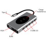 HUB Multifuncional de 13 salidas con carga inalámbrica