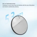 Con un grosor de solo 5.3 mm, este espejo se integra a la perfección con tu smartphone, asegurando un perfil discreto y ligero. Su anillo magnético de alta potencia garantiza una fijación segura sin dejar residuos ni afectar el diseño de tu dispositivo.