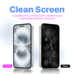 Antihuellas: nuestro protector de pantalla para iPhone 16 Pro Max viene con una capa transparente que es hidrofóbica y repelente al aceite. Después de las pruebas, evitaron eficazmente las huellas dactilares causadas por manchas de sudor y aceite