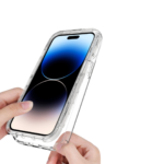 La parte frontal está elaborada a base de TPU rígido, hace la función de un bumper. No incluye protector de pantalla, pero lo puedes combinar con una de nuestras micas 5D. Abraza fijamente los bordes laterales e inferiores de tu iPhone para luego ser recubiertos por la parte flexible.