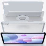 - La estructura interna es de acrílico transparente y el marco & protector de cámara está elaborado con TPU flexible. Incluye un anillo magnético que permitirá girar tu iPad 360°, permitiéndote así varios ángulos de visión.Incorpora además un útil espacio para colocar tu Apple Pencil.