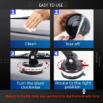 Sujeción ultrafuerte: Fabricado en TPU rígido de alta calidad, cuenta con una potente ventosa circular en la base, diseñada para adherirse firmemente a la superficie de tu auto. Solo gira la perilla inferior y la ventosa se convertirá en una “aspiradora”, asegurando el soporte en su lugar sin riesgo de caídas.