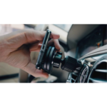 Inspirado en la filosofía de diseño que combina elegancia con funcionalidad, este soporte se integra con discreción en la rejilla de ventilación de tu auto, sin ocupar espacio extra ni interferir con tu vista de la carretera.