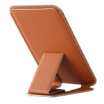 Posee un práctico holder donde podrá reposar tu iPhone, elaborado del mismo material que está elaborada la billetera, es completamente retráctil y listo para que lo uses cuando lo prefieras.